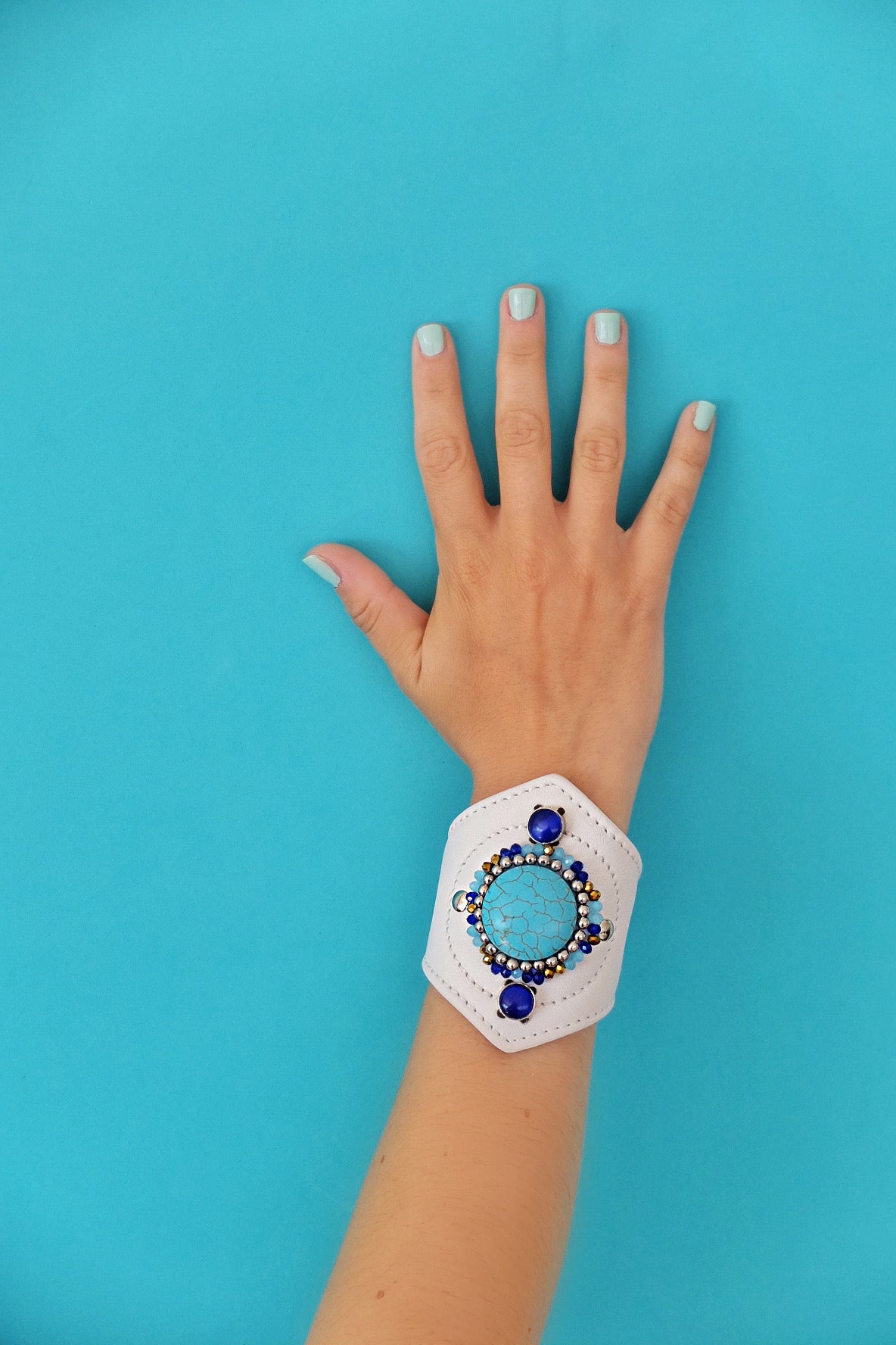 Un brazalete de cuero de estilo boho, con un toque bohemio y a la vez sofisticado.