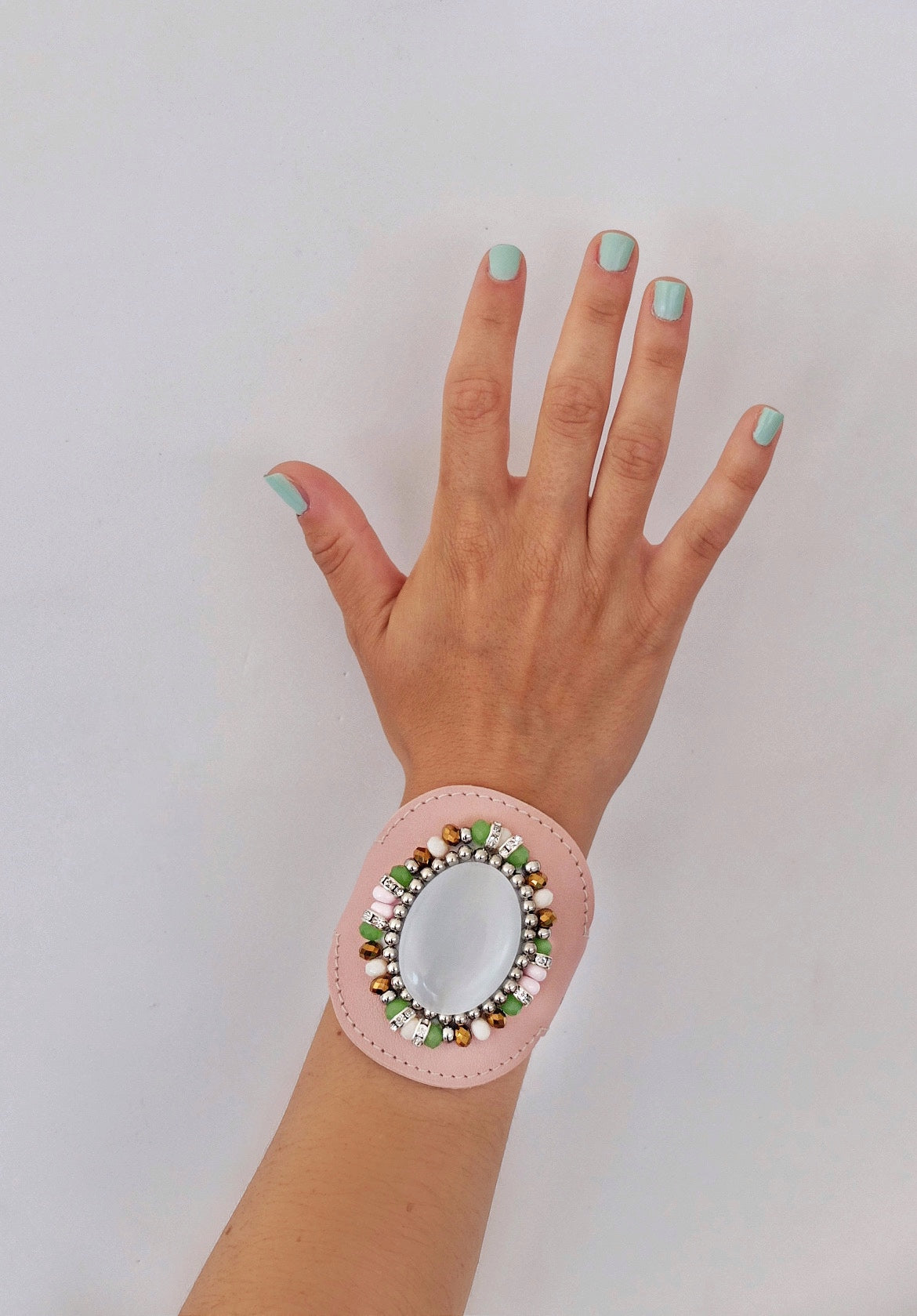 Cada detalle de este brazalete de cuero para mujeres ha sido cuidadosamente seleccionado y trabajado por la diseñadora Paola Torrighelli, quien crea cada una de sus piezas con el amor y la pasión que solo las mujeres pueden infundir en sus creaciones.