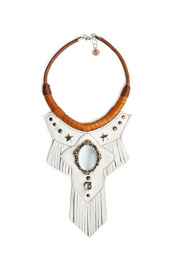 Collar de cuero blanco Kauai